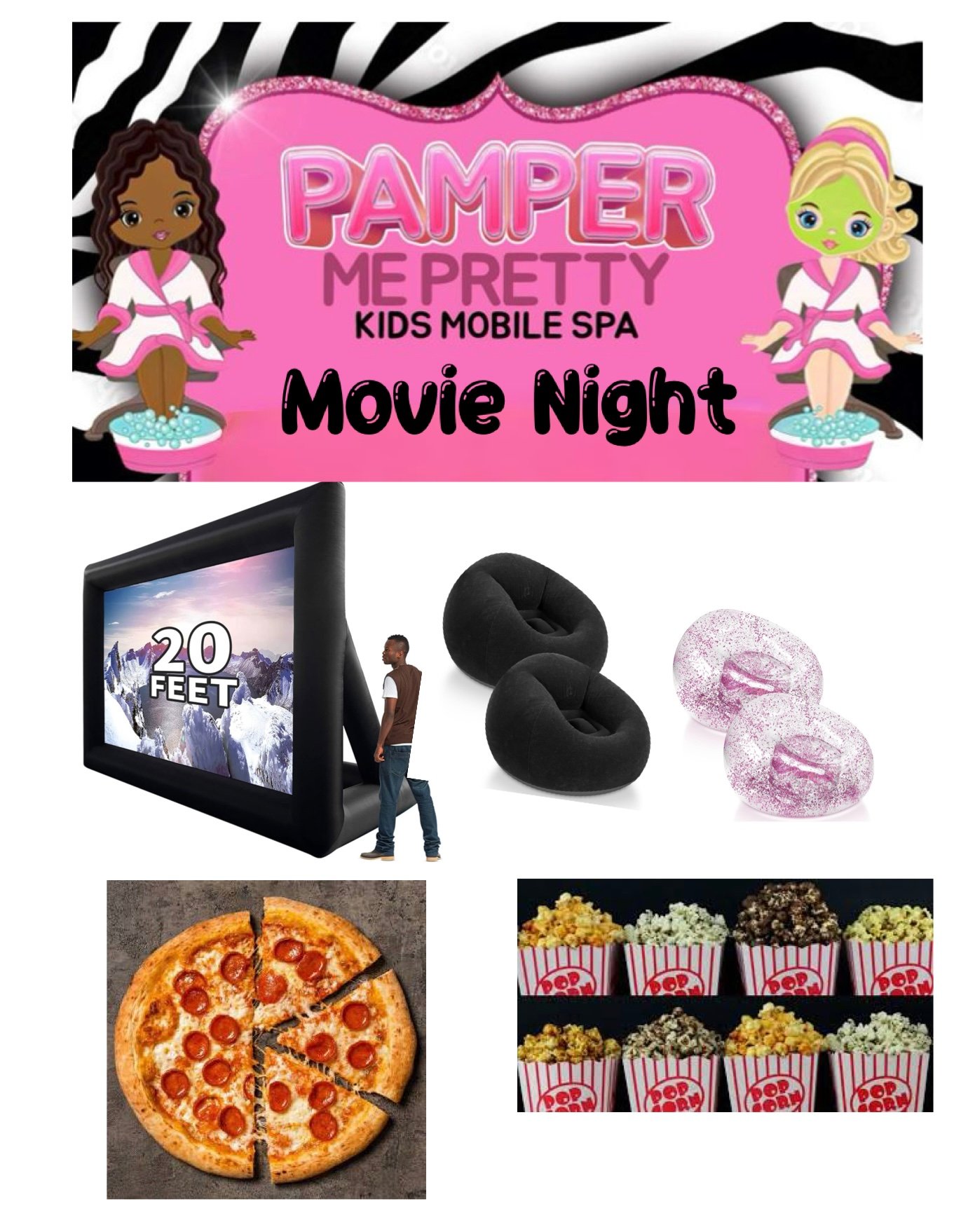 1-2 large pizzas • Popcorn • Drinks • 1 movie • 2-6kids